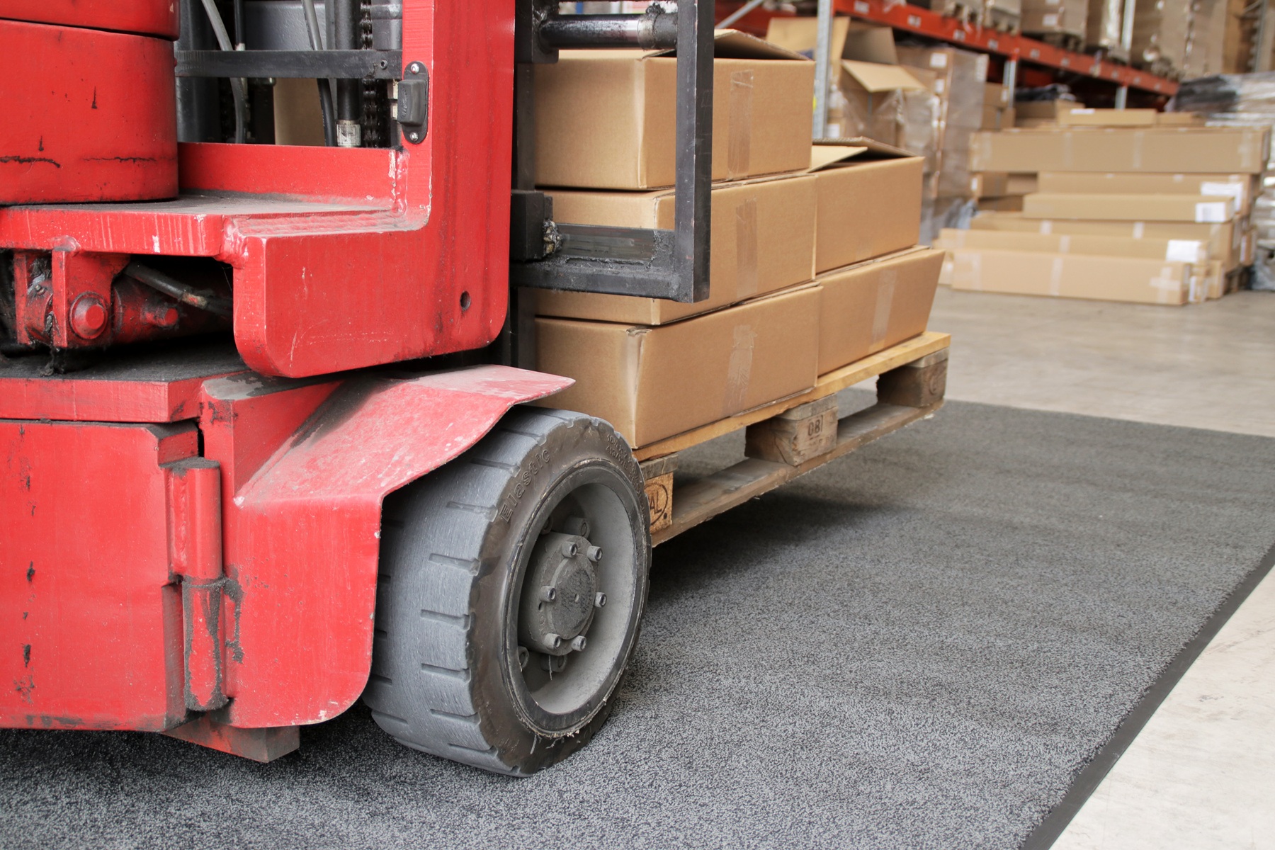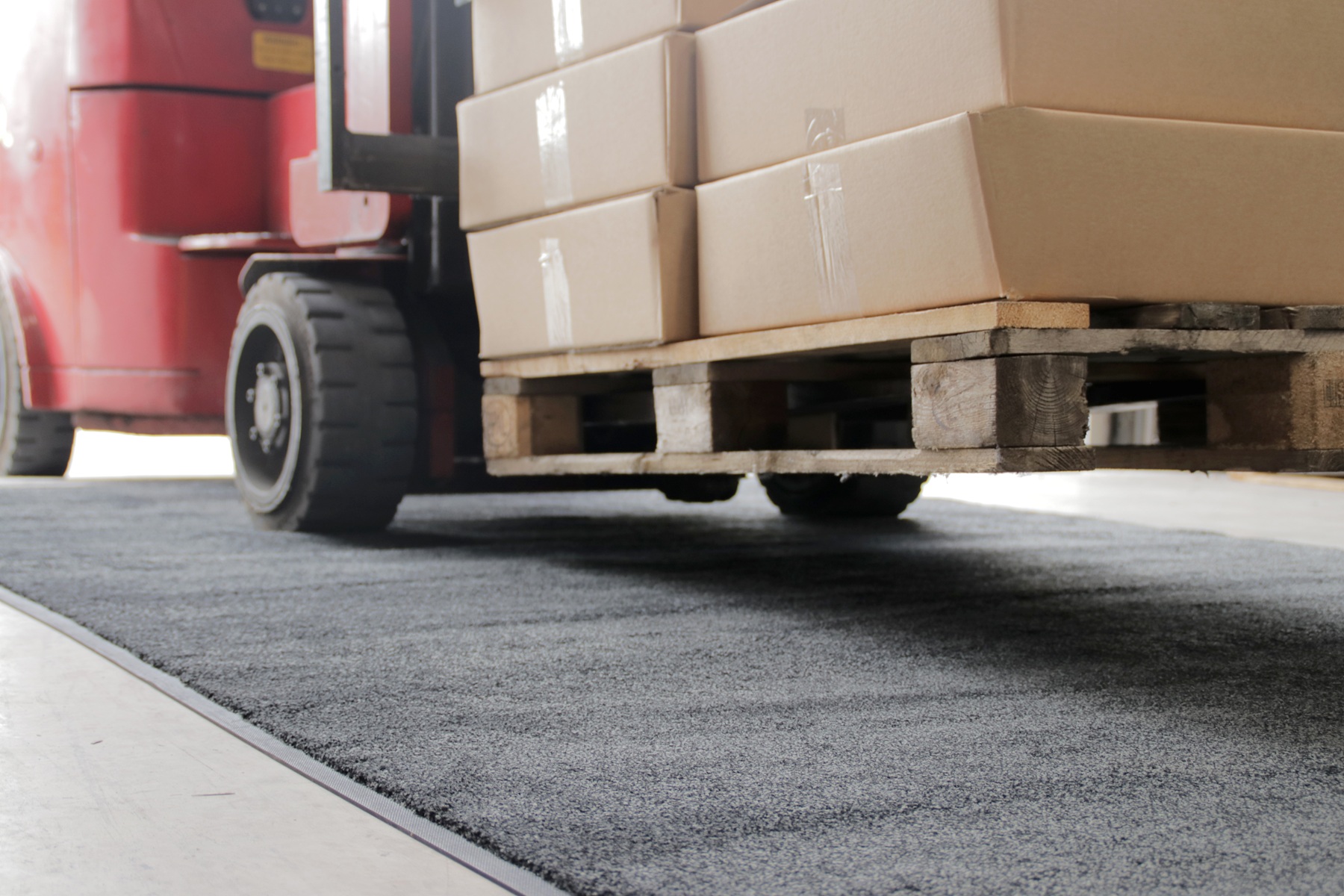 Heavy duty mat that removes water and dirt from wheels as they enter your building, keeping your loading bay floor clean and dry.