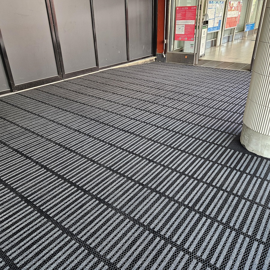 Muovihaka Oy:n toimitukset Itiksen vaihe 2 kattoivat yli 270 m2 toimitettua ja asennettua Jaguar – Tekstiili tuulikaappimattoa.